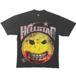 Refresh your streetwear rotation with the Black Hellstar Evil Smile T-Shirt!. This pigment-dyed cream tee features a bold, slime-inspired graphic in vibrant yellow and coral, delivering a playful yet edgy vibe.