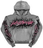 Turn up the heat with the Hellstar Future Flame Hoodie in Grey. This FW23 staple features an all-over garment-dyed grey fleece base thatβs been stone-washed for a vintage, lived-in look. Bold pink gel-ink flame graphics engulf the chest and sleeves, while a subtle Hellstar logo badge sits on the back. Complete with a roomy hood, kanga pocket, and ribbed trims, itβs the perfect blend of street-ready attitude and everyday comfort.