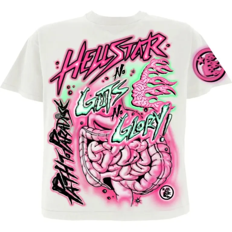Make a bold statement in the Hellstar βNo Guts No Gloryβ T-Shirt in White. This premium white tee features a vibrant, full-coverage print of Hellstarβs signature βNo Guts No Gloryβ graphic for an eye-catching, fearless look.