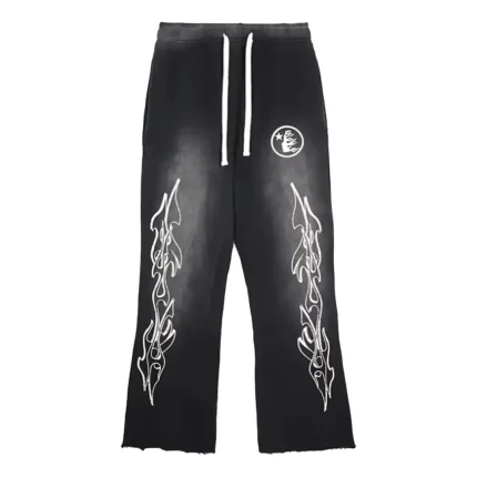 - Bold black flame motifs on front and subtle Hellstar logo at calf