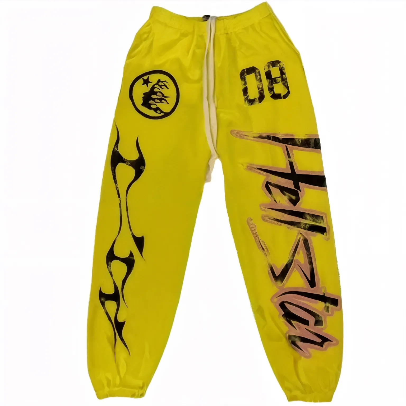 - Oversized β08β and Hellstar logo graphics on thigh and calf