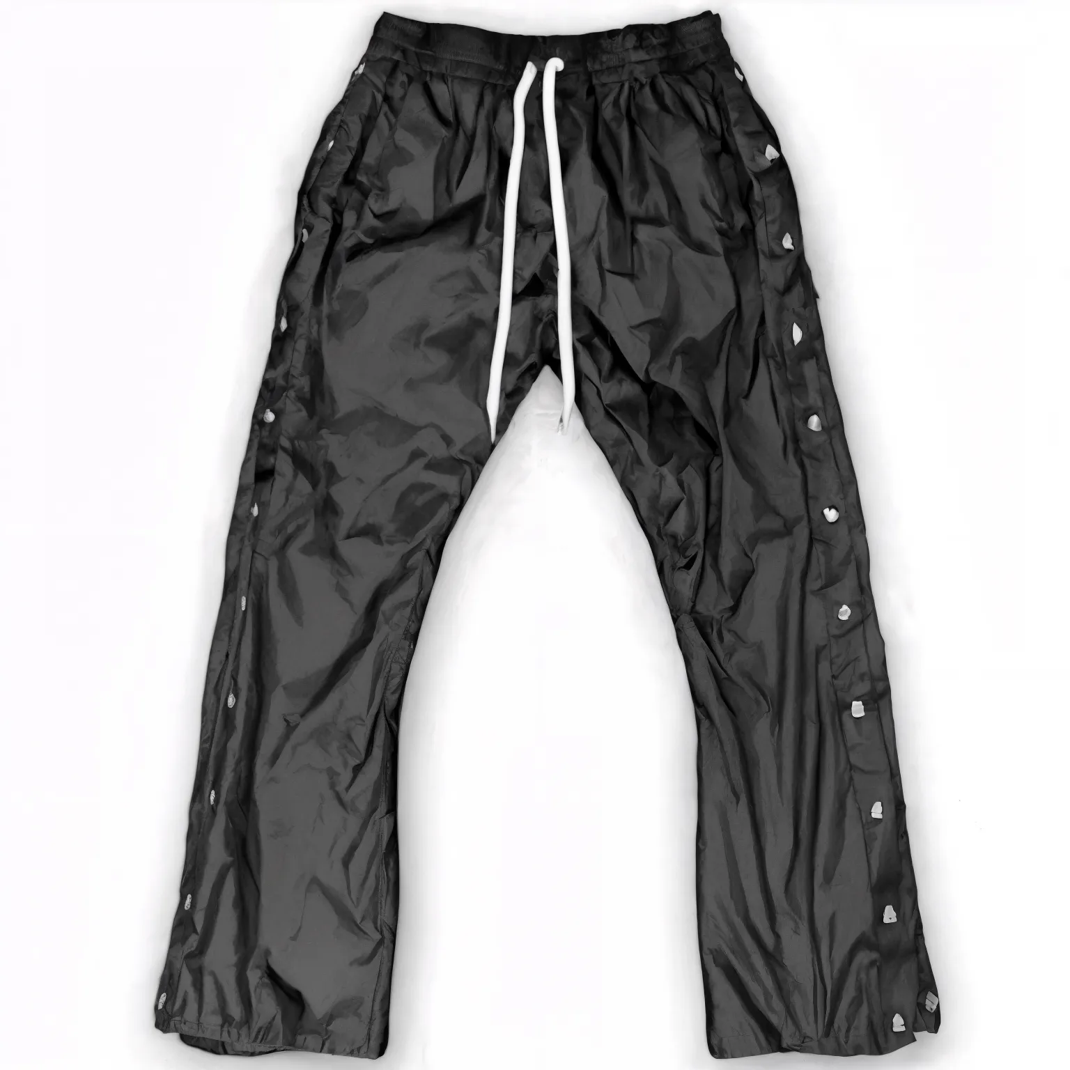 Introducing the Hellstar Waxed Nylon Pants in blackβa street-ready staple with technical edge. Constructed from a durable wax-coated nylon shell, these pants feature snap-off side seams for versatile leg openings, an elasticized drawcord waistband for a secure fit, and tonal Hellstar snap detailing down each leg. Sleek slash pockets keep essentials at hand, while the water-resistant finish guards against the elements without sacrificing style.